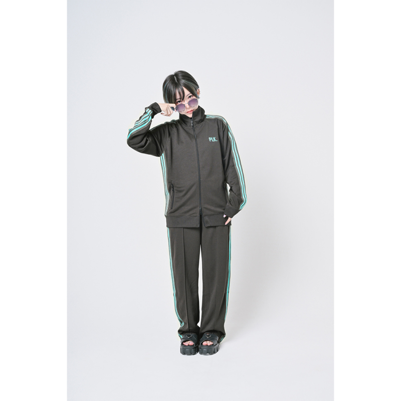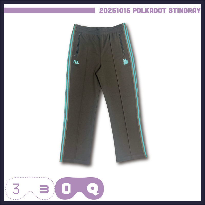トップスと同じライン入り&左右で違うワンポイントの刺繍入り!